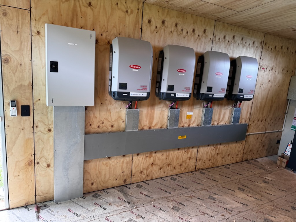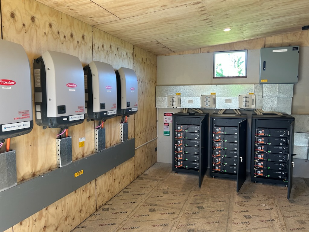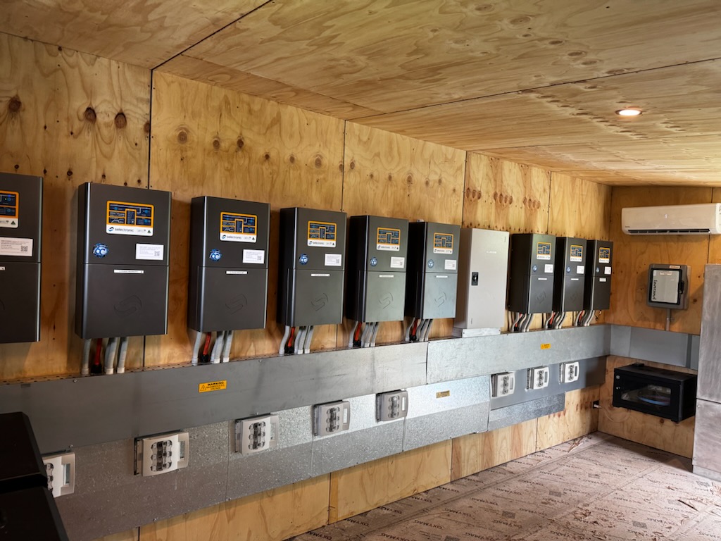 The energy system is paired with nine Selectronic SP PRO Series 2i SPMC482 inverters (7.5 kVA each). These state-of-the-art multi-mode inverters enable seamless energy management for both hybrid and off-grid applications, offering: